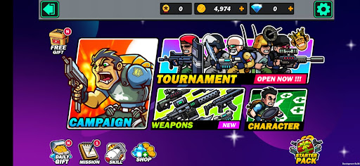 Metal Shooter Fighting 6 is totally platform-style 2D action shooting game, you will become a soldier and help Condor - a supper commando to collect guns, bullets and slugs, through many battlefields, shoot down Maddog's army, put the end to them by deadly strike and weapons. * Use joystick to move left or right.