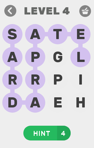 To clear the level you must find all the words, words may be arranged in any manner but they are all connected in a path.