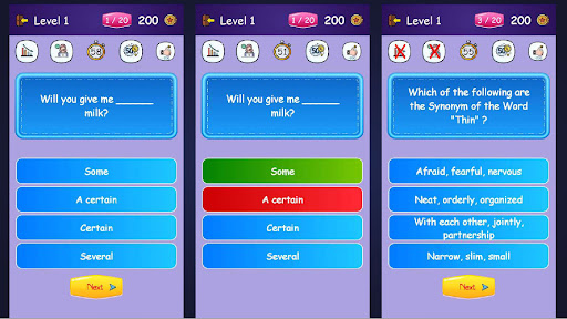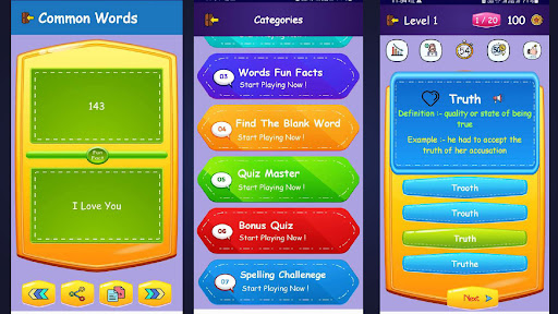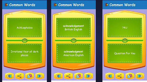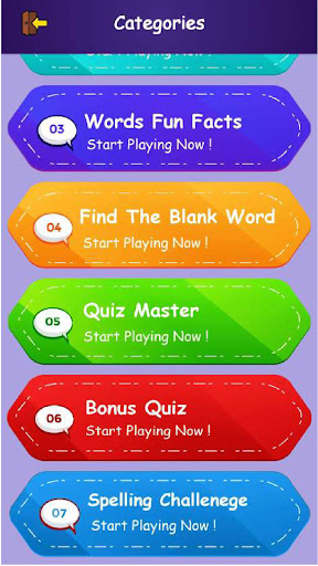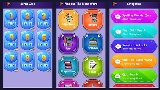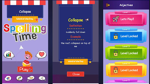 This spelling game has facts about the English language also, in which we have categories like English spelling facts, similar words facts, foreign origin words list, common slang used in spoken English, the difference between American English vs British English, acronyms, etc..... all these categories will ultimately increase your efficiency in learning English words, English speaking, English grammar, etc...