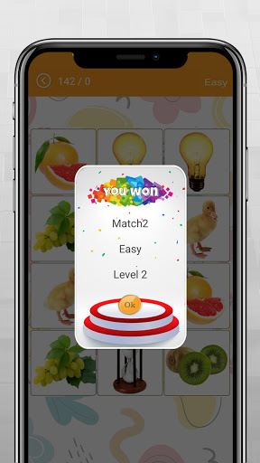 Full Description Picture Match Game is a free casual and puzzle brain trainer game for everyone. The picture match is a game, that amplifies a person's ingenuity or insight. Pair Matching Puzzle is good entertainment for everyone, Match the cards is a great memory matching game for grown-ups but also an unusual and challenging match game for all ages like kids, adults, elders. Pic match gives concentration. pic match game is a time-lapse game, memoria free and easy and concentration to play this picture match brain puzzle game. card memory game with best color full Graphical images of food, vegetables, animals, and types of varieties of concentration cards matching game for enjoying this pair puzzle Spiel, matching games for kids ideal games, and brain game which develops brain memory and gives relaxation in no time. pic match game Interactive and tiny size to download Pair Matching Puzzle on your phone. Memory match game where you can try.