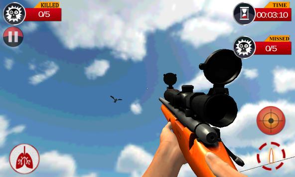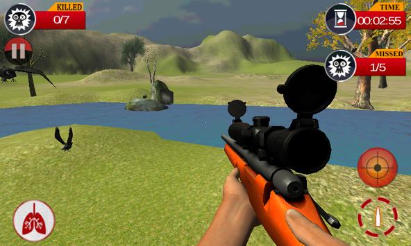 You are a hunter who shoot and kill birds. You can see around and aim from your sniper gun to shoot the birds. If your fire is missed. You are equipped with Sniper gun and, you have to survive with your accurate firing tactics. If you missed specific number of fires then game will be over, the game is over.