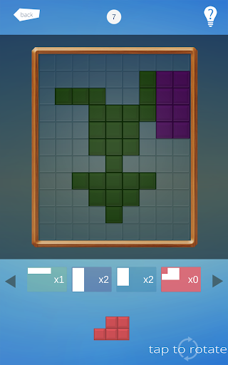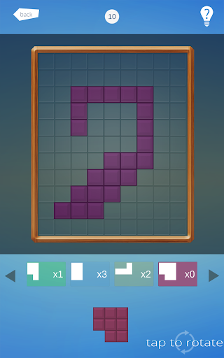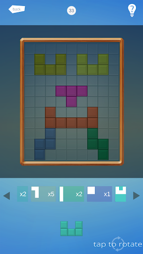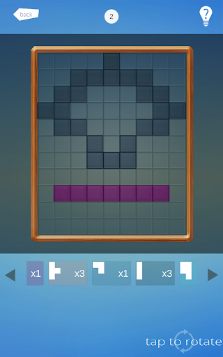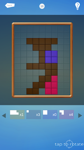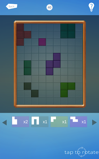 Every level you must complete the whole playing table with blocks. Some spots are completed right from the start with blocks that cannot be moved. The rest of the shapes can be dragged , rotated and placed wherever you want in order to fill all free space. Build your solution like an expert.