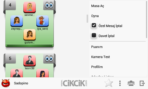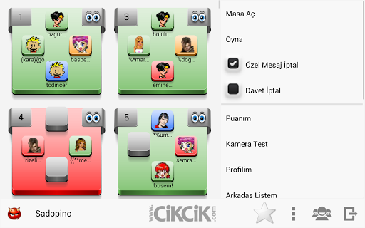 - メンバーになったら、Okey Roomsを切り替えることができます。同じユーザー名を使用すると、Cikcik.comのOkeyゲーム以外に、コンピューターやモバイルから他のゲームをプレイできます。
