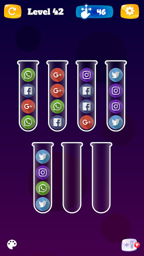 - Tap any tube to move the ball lying on top of any tube into another tube.