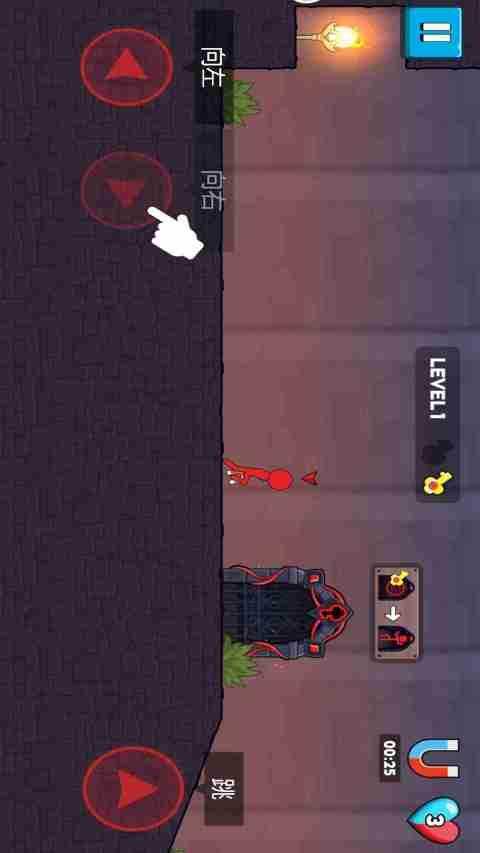 一款趣味性的休闲闯关类游戏,玩家可以选择控制红色或者蓝色的火柴人,在不同的场景自由穿梭,面对突如其来的陷阱和机关玩家都能利用自己的智慧,选择正确突破的模式,保证我们可以通过合作的方式,帮助火柴人逃出去,找到回家的出路。
