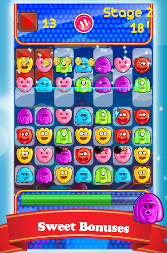 Game control is very simple and thought out to the last detail: you need to move and swap jellies positioned next to each other in order to get three of the same jellies in a row (either horizontal or vertical).