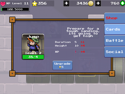 A card system modifies your characters abilities, like speed, jump height, gravity etc.