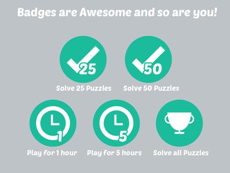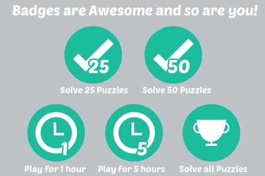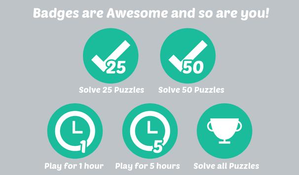 The smaller puzzles are easy enough for beginners and are also great for those who are looking for a quick game to kill some time. Take on the challenge of the larger boards to really flex those brain muscles as you try to piece everything together. There is also a time tracker, so you can get in touch with your competitive side as you try to solve the puzzles as quickly as possible. You can also earn badges for gameplay, from playing for a given amount of time to completing a certain number of puzzles (and of course for solving all of the puzzles).
