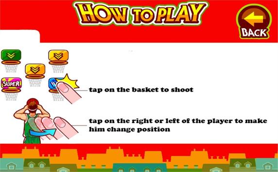 shoot for the basket as fast and as often as possible , by touching the screen , you can also displace your character by taping on his left or right.