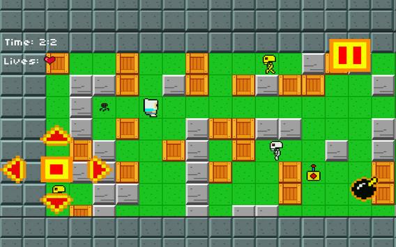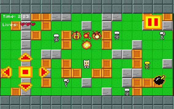 Control your character tapping on the screen. Get more points that will let you get MORE POWERFUL EXPLOSIONS and increase your tact. You can use not only bombs, but also special boots to help your character move faster and avoid blasts. Or shield to block him from this blast or remote bomb control, what is perfect way to increase radius and kill all enemies in a long range.