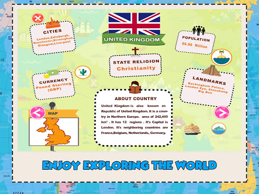 Scrolling through to figure out best learn geography apps for your You might be at the right place. This geography quiz app comprises of 100 countries from the map of the world (this feature can be selected by parents if seeking for any specific country for their child) which includes: