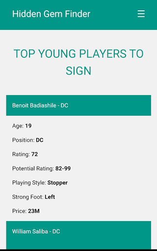 I created this application to help other players to build strong teams with young players that will rule the football world in few seasons.