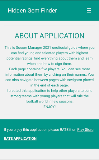 This is Soccer Manager 2021 unoficcial guide where you can find young and talanted players with highest potential ratings, find everything about them and learn when and how to sign them.