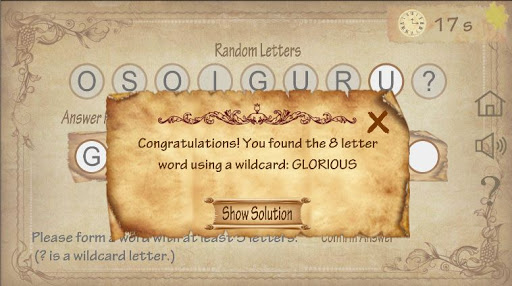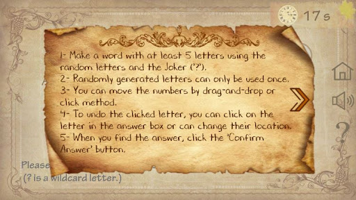 1- Word Game: Make a word with at least 5 letters using the random letters and the WildCard letter ('?').