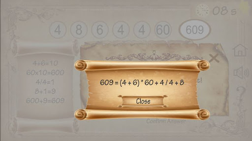 2- Math Game: Reach the exact result(up to 2 close is valid) by using the randomly generated numbers.