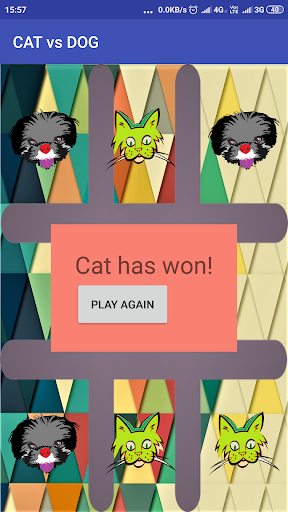 A player can play a perfect game of cat vs dog (to win or at least, draw) if each time it is his turn to play, he chooses the first available move from the following list, as used in Newell and Simon's 1972 tic-tac-toe program.