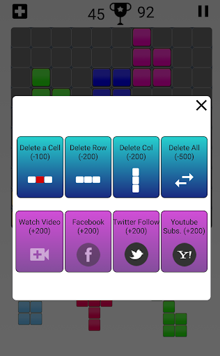 * You earn as many points as you put on the screen and if you blow up each line of squares you can get more 10 points.