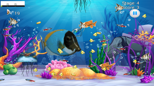A Little fish have a mission in world sea A Little fish can eat smaller fish A Little fish should avoid touch fishes larger than You Eat enough fish to grow Eat gold cube Touch and slide to move your blue fish