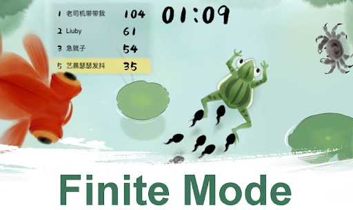The game has the modes of "infinite survival" and "limited time chaos", and other new modes are being developed. Tadpole can not only shuttle in the ripples of the lotus pond, but also compete with other players to "find a little friend, run brother".