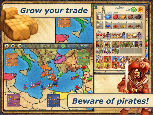In Drapers you will be competing against up to 7 other players, each positioned in one of the great old merchant cities of the Mediterranean sea. Trade wars have never been more engaging. conspire with fellow traders against each other, or use the shady pirate to steal your rival's profits and gain the upper hand in an all out war.