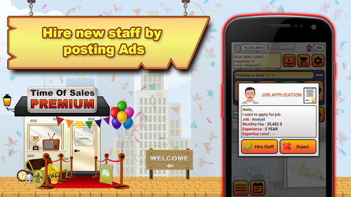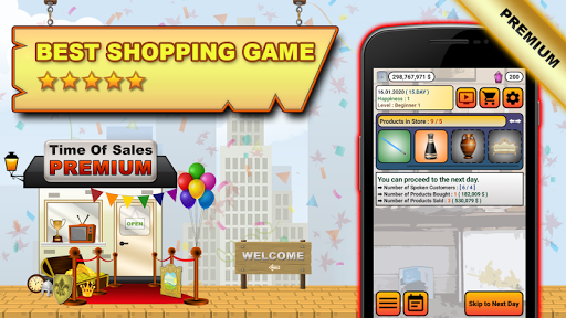 Time Of Sales PREMIUM, is a very successful game in the categories of shopping games, second hand store management games, store simulation games and tycoon games on mobile phones and tablets.