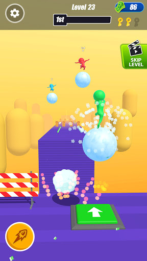 Your goal is simple – compete against other opponents by running as fast as you can and collect the snowballs on your run to increase the size and grow bigger than your opponent. Shoot the roadblocks on your way to overcome the obstacles and use the weapons to freeze your opponent to stay ahead in the race. Boost your powers by winning as many levels as possible.