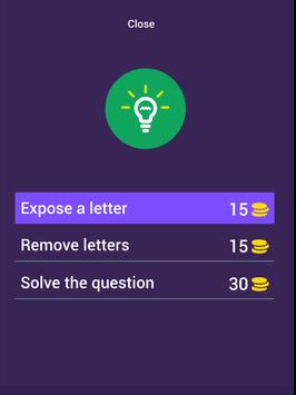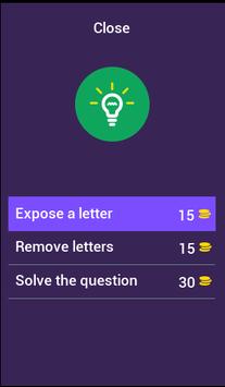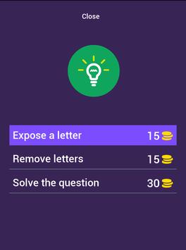 You can get hints by exposing a letter, removing all wrong letters or solving the question.