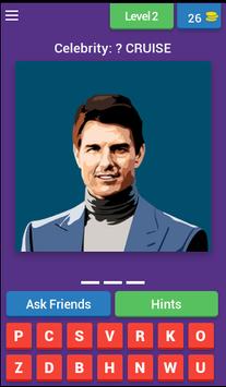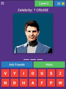 'Guess That Celebrity' aims to challenge yourself to guess the real names of the most popular male and female actors, famous people, singers, rappers in Hollywood.