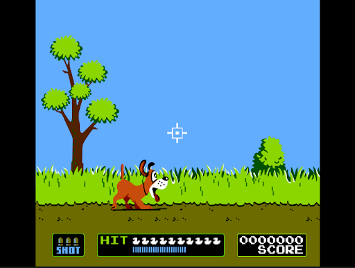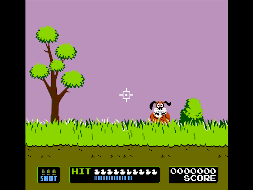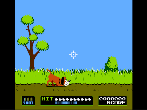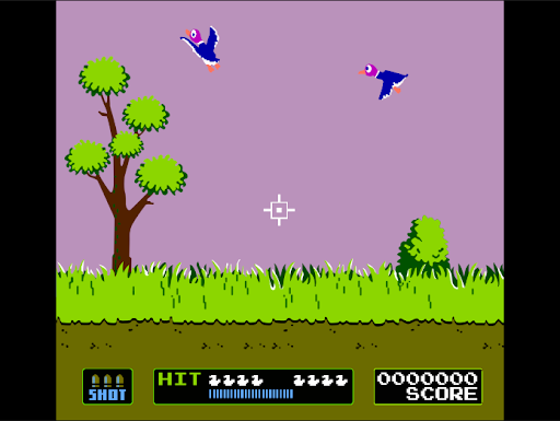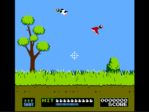 In Duck Hunt, players shoot ducks that appear on the screen. The ducks appear one or two at a time, and the player is given three shots to shoot them down before they disappear. The player receives points upon shooting each duck. If the player shoots the required number of ducks in a single round, the player will advance to the next round; otherwise, the player will receive a game over.