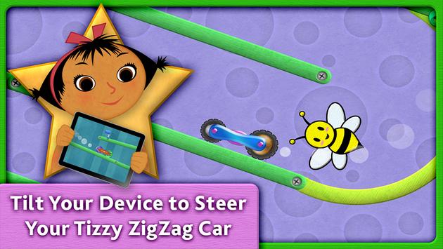 Get ready for Kid-Powered Car Racing Action with Tizzy ZigZag Car! The fun begins when you get to design your own Tizzy Car, by choosing a body style and wheels. Next, choose a race track where you control the action by tilting your tablet or phone to make your ZigZag Car GO.