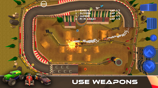 Fascinating two-player one-screen experience. Play this multiplayer mobile RC racing game with your friends on one device or play online up to 4 players. Select racing series like: Drift Racing, Formula 1 and Monster Trucks. Unlock tracks filled with random obstacles and exciting bonuses like speed gain or rocket launcher. Select cars and race against your friends in 2 player mode or AI in single player mode. Crash your enemies and ram your way to first place. Play in either top -down or split screen mode.