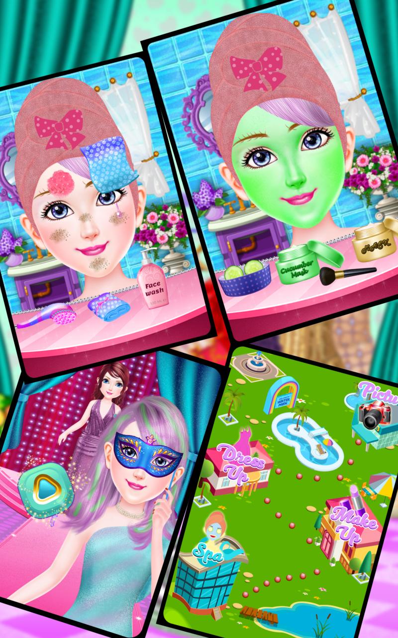Girls just love makeup spa games, so this new fashion world game is suitable for girls of all ages. Best spa and beauty games, fashion dress up games for girls are collective in our terrific makeover games for girls with beauty spa and salon games comprising exciting levels. Start by heading to the spa in which you shampoo her dirty hairs, wash face and remove pimples. Apply multiple facial masks with cucumber to remove dark spot from eyes in this dress up salon games, makeup and dress up games for girls.
