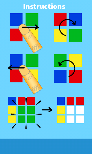 Touch screen on the intersection of 4 tiles and swipe left or right to rotate them counter or clockwise. When 4 tiles of the same color create square, they vanish and you get point. After each move one random tile will appear.