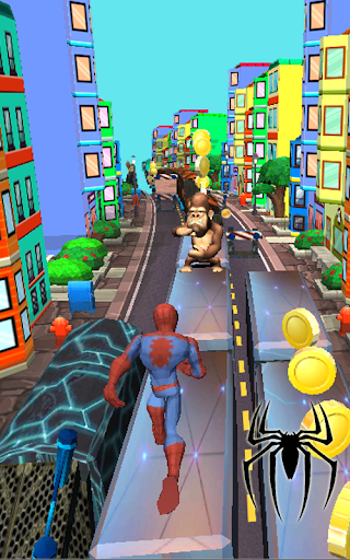 Come on, friends, just download and play this game, you must be familiar with the spider super hero who is very agile and strong. This time the newest endless running adventure and the new city layout will make you very exciting to play and won't feel bored, friend. He can jump and kick the enemy who gets in his way.