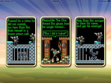 If you miss the classic 90s platform game then Boris Bot is for you - jump on it now, and join the epic battle in his escape and the assault on the enemy fortress.