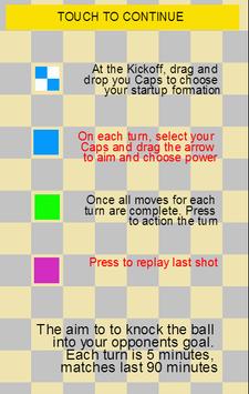 Soccer Caps features simple and intuitive touch screen controls. Drop and drag your Caps and drag to ait position and power. Choose the right tactics to score as many goals as you can in a 90 minute match.