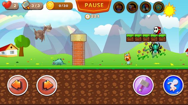 run and jump over the enemies or attack them with the hammer . in this mysterious Три Кота run Adventure.
