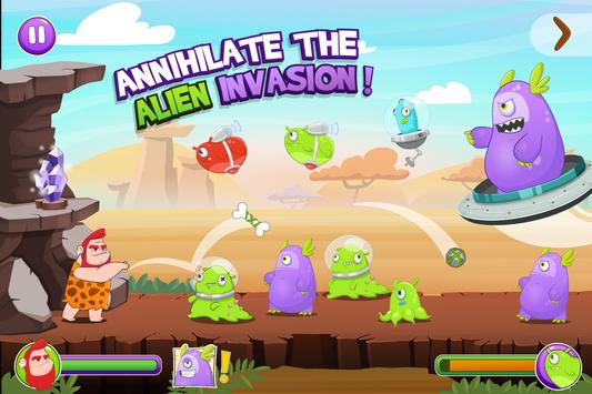 Your rock cave is under attack by aliens gone crazy for their lost artifact. Defend yourself against them and survive the incoming attacks from the enemy waves wanting their treasure back.