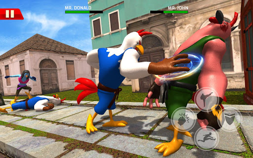 Easy gameplay and smooth controls. Eliminate all opponent farm chicken fighters. Fight using a variety of innovative tricks such as latest combos to takedown punch boxing, kick fighting rooster rivals. Chicken beat em up kung fu karate game offers multi street fighting user experience with challenging combat missions.
