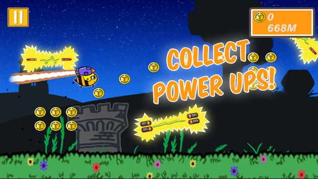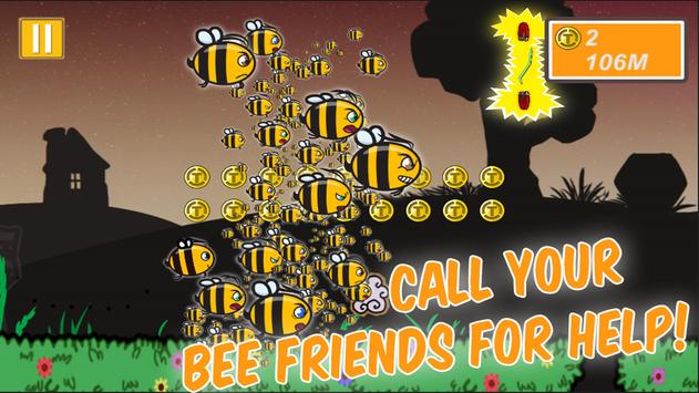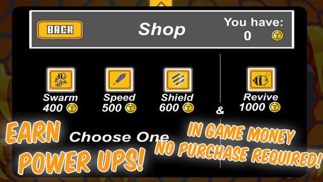 Take flight and buzz as far as you can! This 2-D tap style side-scroller takes you on a fast paced adventure where your goal is to fly the farthest distance without getting shocked by zappers or shot down by rockets. During your adventure you can collect power-ups such as a honeycomb shield to keep you safe and a swarm of fellow bees to knock away pesky obstacles.