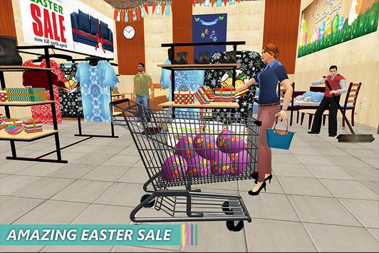 Happy Easter festival: Shopping Fun is entertaining game with interesting gameplay where you play as shopping mall customer and buy grocery products, winter clothes & many more things. Get in the super market, where you shop as you do in your real life to enjoy the shopping activities. You can use shopping mall ATM machine and withdraw some money which you want during the shopping. Pick the shopping cart and pick the grocery product which you want or which you are written in the products list. You can also buy some winter clothes for Easter spring event and enjoy quality time with your family as well as friends. Buy furniture for spring night party in this happy Easter sale simulator. Thrilling missions are ready to entertain the user and this simulator increase your shopping experience.