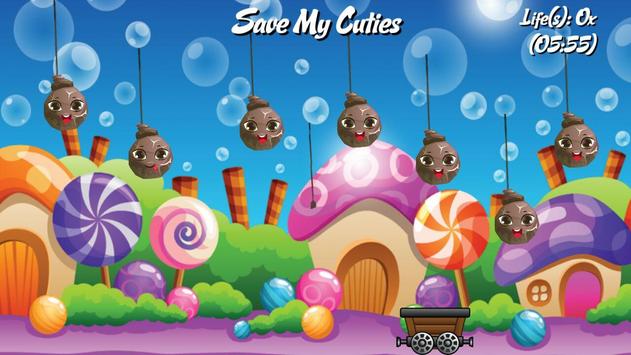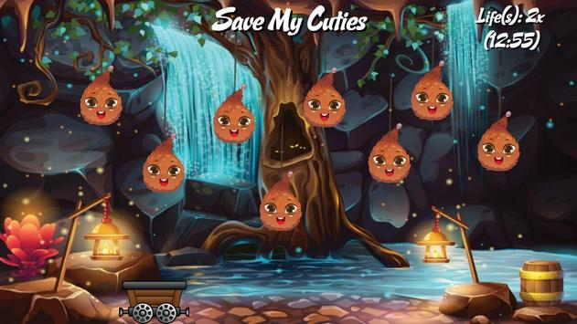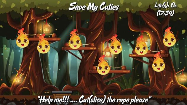 A group of Cuties lost their way when roaming around. Unexpectedly they are caught and tighten up at many locations. All the cuties need your help. Save them by cutting/slicing the rope and make sure that the cuties fall into the cart instead of the ground.