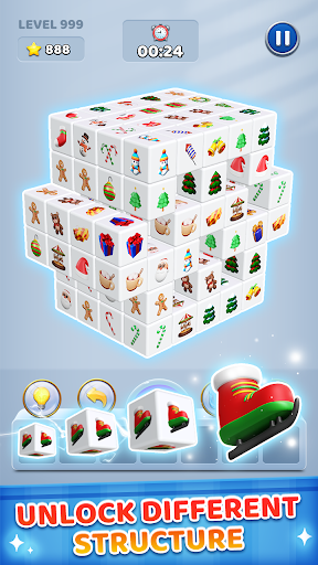 The 3D cube game shows the super creative gameplay by combining many classic board games, likes Majhong, tile connect, 3D match to a rubiks cube.