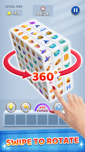 Triple 3D Cube is a unique and fashionable triple match puzzle game. All tiles are grouped to a rubiks cube, and you can swipe to rotate the cube by 360 degrees.