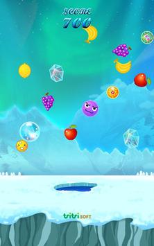 Fruit and ice hits the ball quickly frozen fruit away.