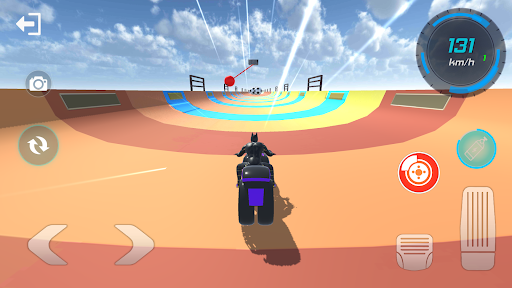 Realistic environment has been designed for bike jumpers, moto bike stunts, tricky and crazy bike stunts, speed stunts, bang stunts at impossible tracks full of hurdles like footballs, cool flips etc. Smooth game play control will entertain all game lovers as well as they wanted while driving Super hero Bike Race .