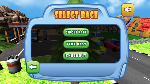 Toon car racing challenge a great racing challenge for kids and adults alike. Everyone would love a toon car racing challenge that are clumsy like kids toons. These cars move as fast lightening. If you enjoy riding beach buggies then you will surely enjoy driving a kids toon car and racing with other toon cars. Dream of mimicking one of such cars is a reality now with in everyone’s grasp. Toon Racing Challenge gives all that to you and much more, a choice to select from Single Race, or Time beat level or Knockout Round race menu.