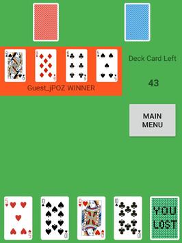 The Host deals four cards to each player, one at a time. The remaining cards are placed face down on the stock (right top screen)