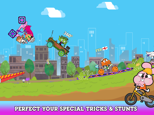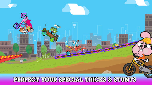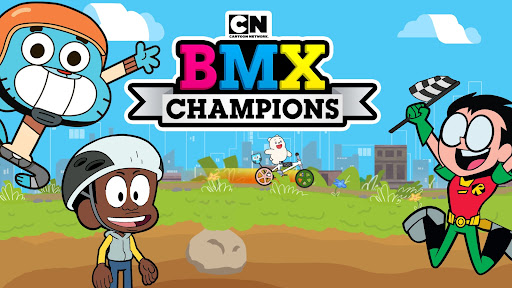 Ride your bike through fun-packed tracks with jumps and loops in this simple and fast-paced head-to-head biking rampage racing game. Whether you are into stunts, one-wheeling, dirt biking, stoppies, or speed thrills, BMX Champions will have you displaying your best skills while you manoeuvre your way through the obstacle course mayhem! Play as your favourite Cartoon Network character and jump on your customised bicycle ride and line up against other Cartoon Network characters. You will have to boost, balance and power to the finish line in this crazy racing course!