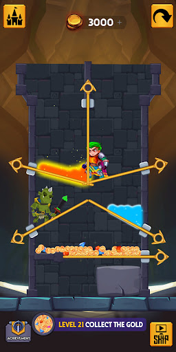 If you are going to experience the excitement of saving your kingdom with easy-medium-hard levels in this brain-tiring puzzle game where you will not understand how time passes. Getting the gold and saving the princesses may not be as easy as you think. Monsters like goblins and various challenges are the biggest obstacles in the Kingdom Rescue adventure. You can overcome all kinds of obstacles that you may encounter, thanks to pin puzzles. Pull pins, destroy monsters and get your reward.